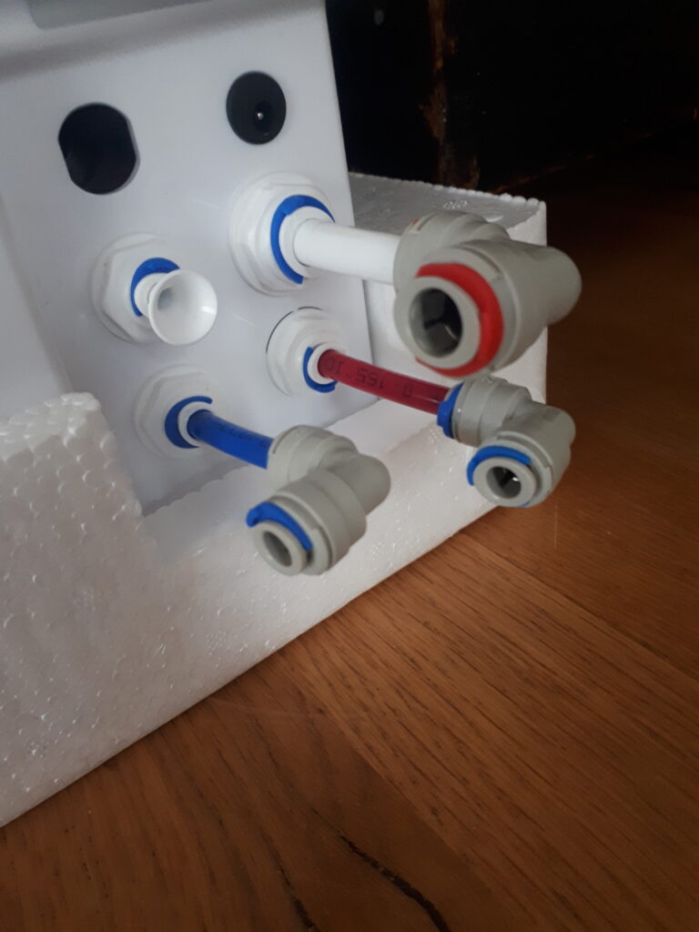 TANK= Druckgefäss für mehr Wasserdurchlauf (auf dem Bild nicht angeschlossen. ) benutzen wir Standardmässig Gelber Schlauch. Kann optional angeschlossen werden. Wenn Du z.B. eine Kaffeemaschine mit direktem Wasseranschluss anschliessen willst, Foodcenter oder andere Geräte.